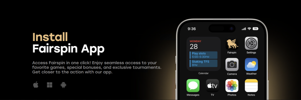 - Full funksjonalitets-likhet: Hver eneste automat, hver live dealer og hvert sportsmarked er tilgjengelig på mobil. Du kan til og med administrere din Fairspin TFS Token-staking direkte fra nettleseren på smarttelefonen din.